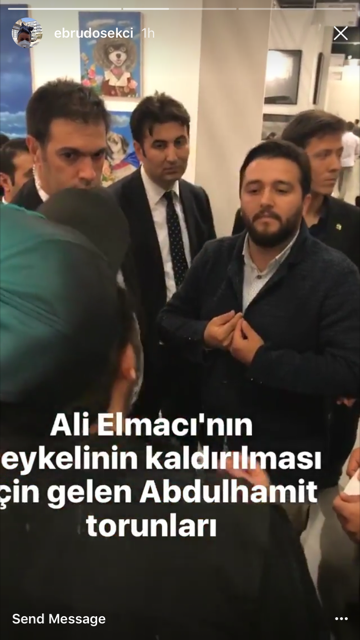 Dün fuarın halka açılmasıyla hareketlenen sosyal medyada, fuarda olduğunu takip ettiğim hesapların Instagram hikayelerinde kavga görüntüleri görmeye başladım. Fuar da pek tabii ülkenin şartlarına uyum sağlamış ve Erbakan Vakfı üyesi olduklarını iddia eden 20 kişilik bir grup tarafından basılmıştı. Bu aralar elimizde olmadan alıştığımız bir durum olarak yine birilerinin aşırı hassas milli değerleriyle oynanmış, II. Abdülhamid’i aşağıladığı gerekçesiyle Ali Elmacı‘nın heykelinin bulunduğu Şilili galeri Isabel Croxatto‘nun standı, heykelin kaldırılması fetva edilerek basılmıştı. Ülkede sanatla ilgilenen (maalesef) bu kadar az insan varken, bütün eserler çarşaf çarşaf gazetelerde yer almadığı, ilgiden kapılarda kuyruklar olmadığı halde nasıl oluyor da “Sanat fuarı varmış ve orada milli değerlerimizi hoplatacak heykel varmış,” haberi alınıp galeyana geliniyor da fuar basılıyor, akıl almıyor.
