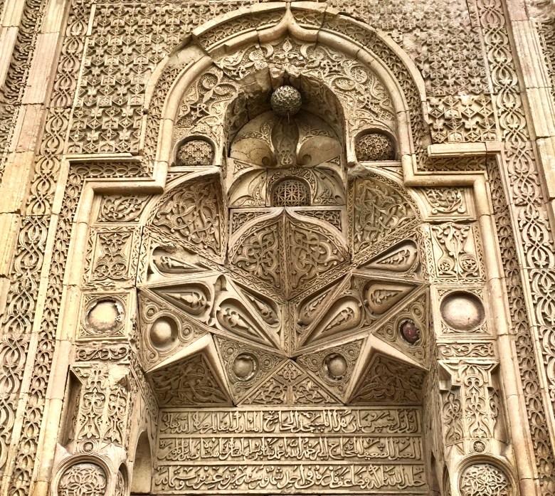 Yapının 4 kapısı, Batı Kapısı, Cennet Kapı, Şah Kapısı ve Taç Kapı her biri birbirinden farklı olmak üzere, bakmaya doyamayacağınız taş işçiliği motifleri ile bezenmiş. Yapı, uzaktan bakıldığında simetrik olduğu gibi bir izlenim yaratsa da aslında asimetrik. Bu asimetrinin üzerine kondurulmuş bezemeler ise on binlerce motiften oluşuyor ve bu motiflerin hiçbiri, hiçbir kapıda kendini tekrar etmiyor, hepsi benzersiz. İşte bu yüzden, bu kapılar ve üzerlerindeki ince işçiliklere bakarken, hakikaten bir cennet varsa, kapısı böyle olmalı diye düşünüyorsunuz… O kadar güzel ve görkemli bir görüntü ki, ruhani yönünüz aklınızdan bağımsız harekete geçiveriyor, sizi ayrı bir dünyaya götürüyor o görüntüler. Binaya sanatlarını aktaran taş işçilerinin de amacı, kâinattaki farklı varlıkların muhteşem bir ahenk ve denge içerisinde olduklarının taşa nakşederek gözler önüne serilmesiymiş zaten.