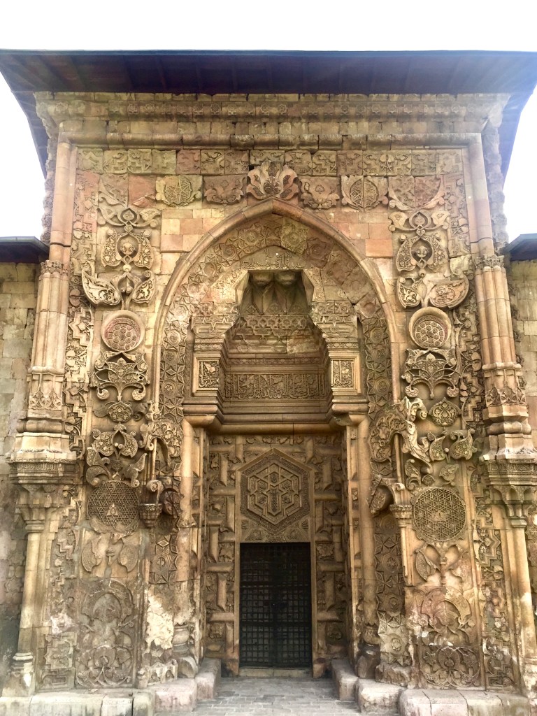 İtiraf etmem gerekir ki, bu yapıyı ilk kez görmeye Divriği’ye doğru giderken neyle karşılaşacağım ile ilgili hiçbir fikrim yoktu. Bu sebepten, bu inanılmaz binayla karşı karşıya kalıvermek benim için unutulmaz bir anı oldu. Keza, söylenen odur ki, bu yüce binanın anlatılması yetmeyecek güzellikteki devasa kapıları, binanın kullanıldığı dönem, uzun kervan yolculukları sonucu camiye ulaşan yolcuların binanın kapısı önünde nutuklarının tutulup kalakalmalarına sebep olurmuş. Ben de uzak yollardan geldim ve amaçlanan tutulmaya ulaştım…