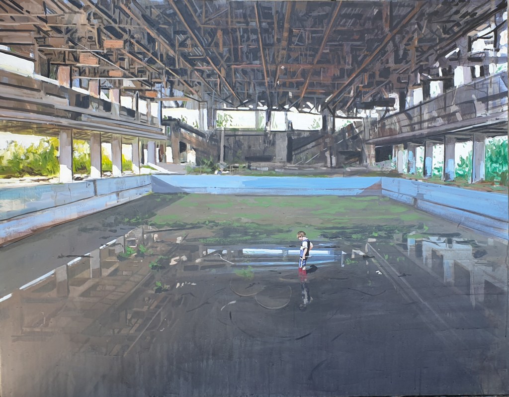 Sidar Baki, bu sergisinden daha da bir özgürleşen fırçası, bir önceki sergisine göre büyüyen figürleri ve bu kez iç mekandan dış mekana çıkardığı resminin ana kahramanları çocuklarla sizi oyuna davet ediyor. Terk edilmiş fabrikalara, artık betondan kurumuş bitmiş gözüyle bakacağız şehir köşelerine, altyapısız, çamurlu sokaklara gidiyoruz. Gittiğimiz yerlere şöyle bir bakacak olsak içimiz kararır ama sanatçının resminde başrole aldığı çocuklar, bu mekanları birer oyun alanına dönüştürüyor. Gazi Mahallesi’nde Urfa’ya farklı şehir ve semtlerde öğretmenlik yapan sanatçı, çocukların o geçmeyen neşesini, masumiyetini o kadar iyi gözlemlemiş ki, yarattığı terk edilmiş mekanlarda seyirci olarak karşılaştığınızda, hemen tanıyıveriyorsunuz o masumiyeti. Bahçe olmadığı için sonsuz bir beton denizinin üzerinde futbol oynayan çocukların seslerini duyuyorsunuz Baki’nin resimlerine bakarken. Çamurda sek sek oynayan çocuğun zıplayıp da su sıçratırken yaşadığı umursamaz keyfi alıyorsunuz. Ya da terk edilmiş bir alanda çocuk olarak çöp, yığıntı değil macera görebileceğinizi hatırlıyorsunuz. Sokaklarda oynadığım yazlık arkadaşlarım aklıma geliyor; her şey, her taş, her tepe bizim için bir maceraydı. Şimdi gitsem topu topu 3-5 sokakmış yahu, diyeceğim yazın gittiğimiz o kasabanın sokakları bizim için uçsuz bucaksız bir dünyaydı. Uydurduğumuz hikayelerde kasabanın tepesine hayalet de gelirdi, bizimle arkadaş olmak isteyen hayali ajanlar da, en sevdiğimiz Amerikalı müzik grubunun üyeleri de. Çünkü neden olmasın? Uydur gelsin, söyle gerçek olsun, her yer bizim dünyamız kadar geniş olsun…