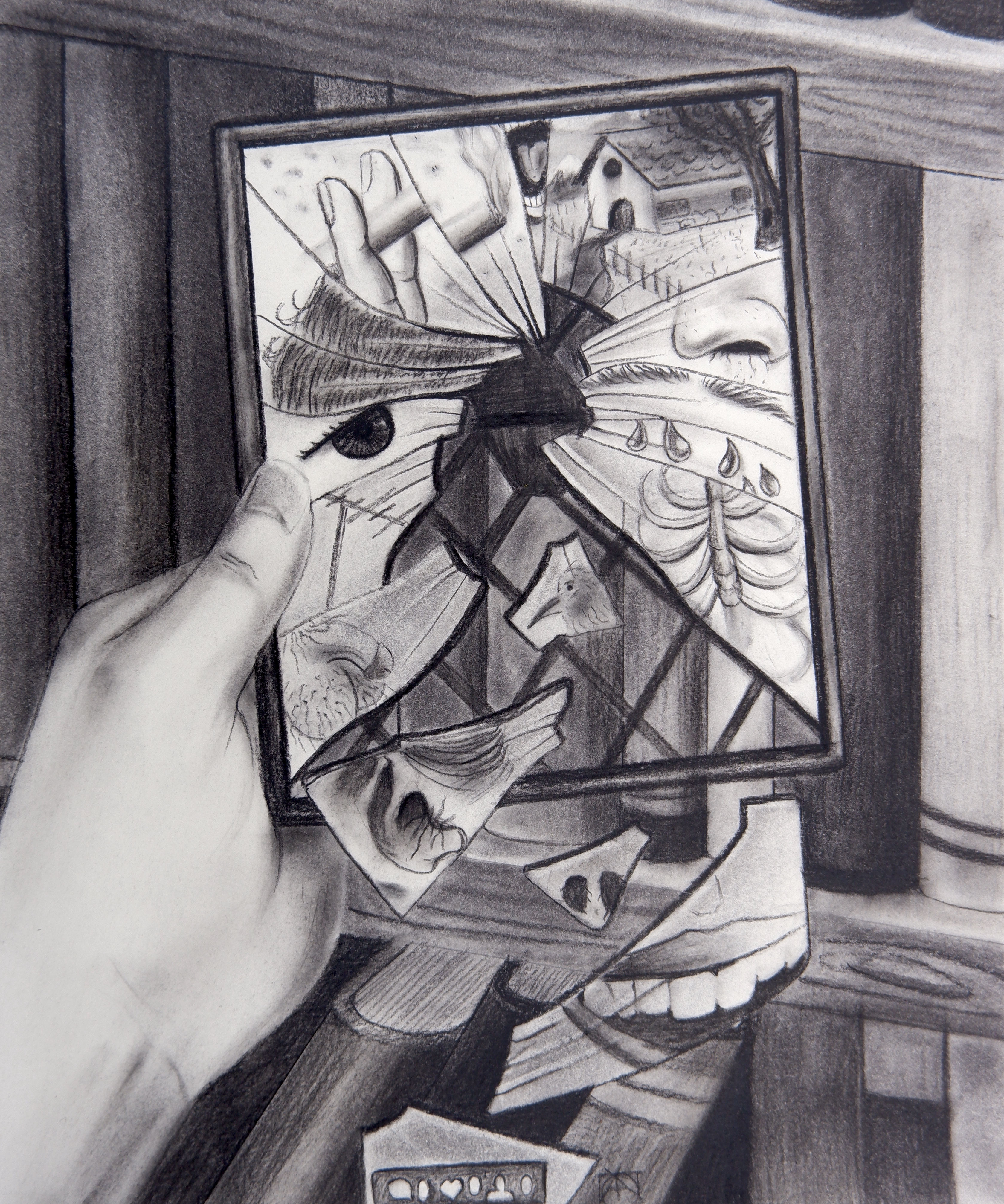 Benzeşen hisler, Kemal Özen’in kömürden desenlerinde koyu bir derinlikte buluşuyor. Özen’in karantina boyunca kendisi ile baş başa kalmanın, kendisi ile hesaplaşmanın, kendisini sorgulamanın sonucunda ortaya çıkan karanlık dehlizlerinde kendime bakıyor gibiyim. Birbirine karışan haftanın yedi günü, iç sıkıntısı, kendine bakıp da kendini tanıyamadığın aynalar, artık sürrealleşen algılar, küçük ve sık gerilimler, oynayan sinirler, öngörülemezliğin sizi soktuğu kara delikler… Freud, insanın aynı karşısına geçtikçe rol yapmayı öğrendiğini söylermiş. Kemal Özen de anlatısının yanına deforme aynalar koymuş. İzleyici kendinde ne görüyor? Herşey bittiğinde aynı kişiler mi olacağız? Biz kimiz? Sen kimsin?