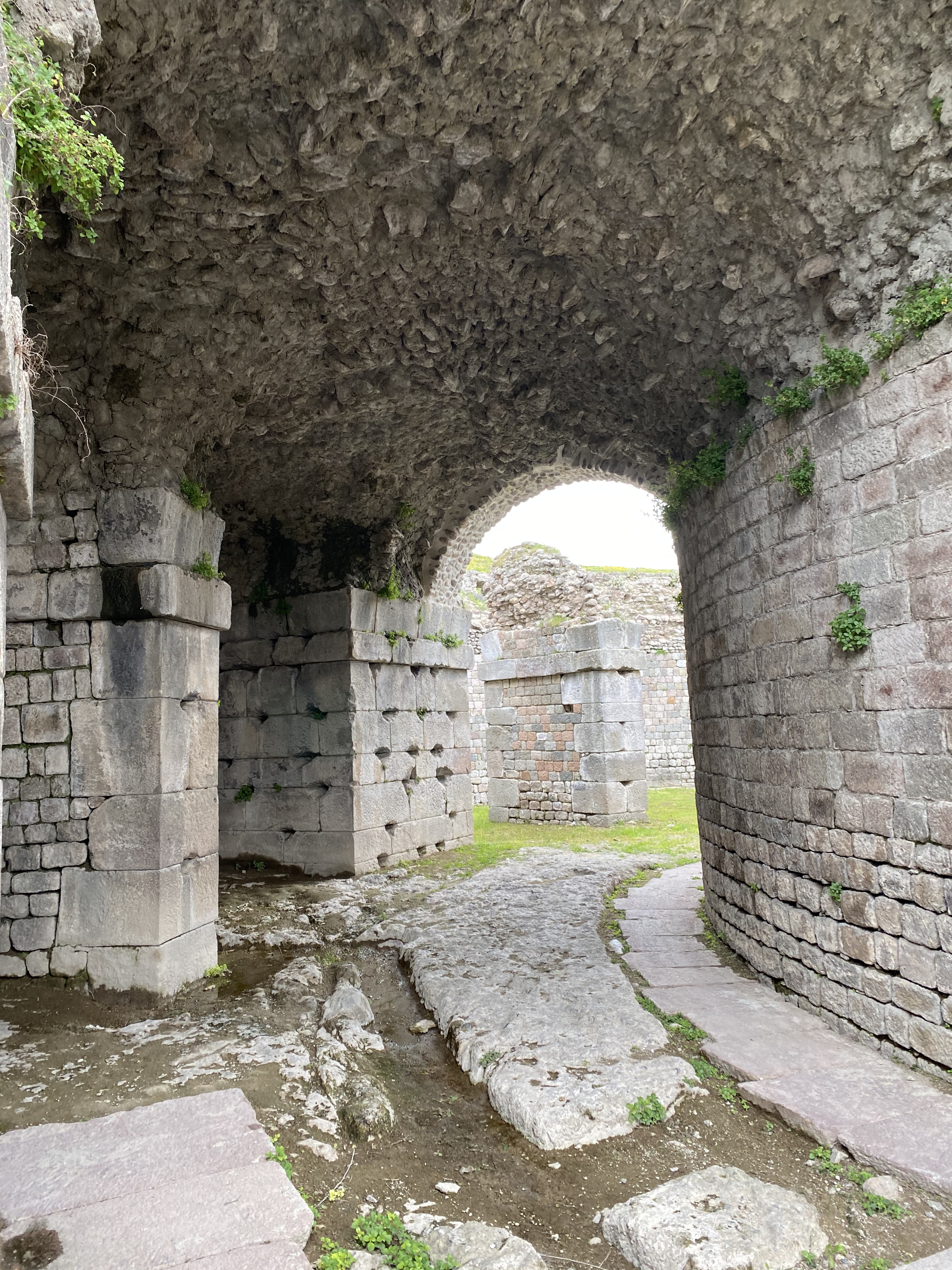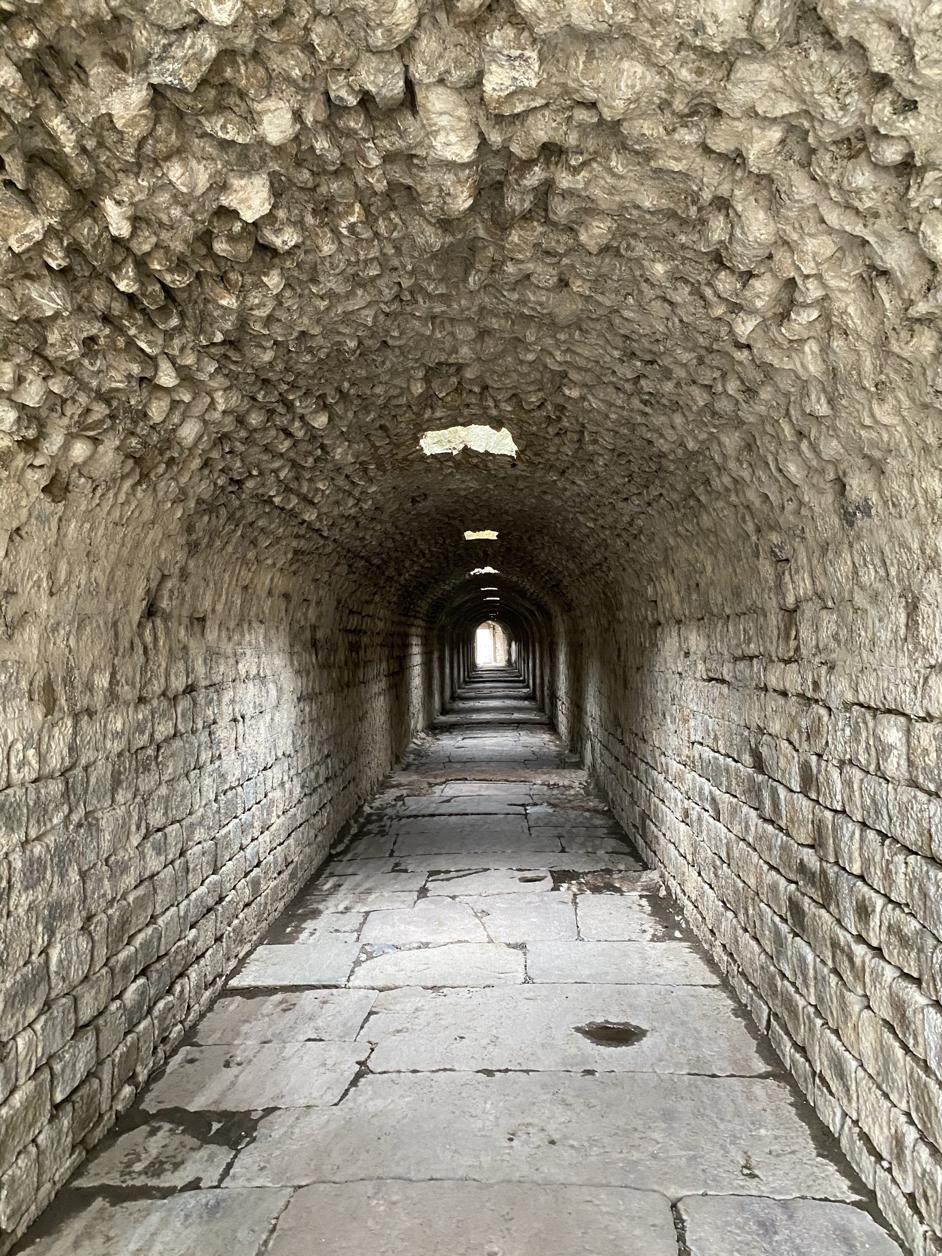 Bir kaynağa göre üstü tonozla örtülü, 70 m uzunluğundaki Kryptoporticus adındaki, yukarıda da bahsettiğim tünel, hastaların olumsuz hava şartlarında uyku odalarına ulaşmaları içinmiş. Kutsal su kaynağından gelen ve tünel basamaklarından aşağı doğru akan su sesinin tünelde yarattığı mistik ortam sebebi ile tünelin tedaviye yardımcı bir mekân olarak kullanıldığı belirtiliyor kaynakta. Başka bir kaynağa göre ise, hastalar özellikle bu tünelden geçirilirmiş. Hastalar tünele girdiklerinde çevrelerindeki duvarlarda hayatı anlatan fresklerin etkisiyle sorunlarını hatırlarken tünelin üstündeki deliklerden doktorlar telkinlerde bulunurlarmış. Doktorlar bir Tanrıymışçasına konuştukları için hastaların Tanrıların onlara yardıma hazır olduklarını bilmesi iyileşmelerinde etkili olurmuş. Aslında bu telkinler, ne yenilip ne içilmesi, ne yapılması gerektiği ile ilgili telkinlermiş. Bana sosyal medya üzerinden ulaşan başka biri ise bu tünelin sağlık merkezinin psikolojik rahatsızlıklarla ilgilenen bölümü olduğunu, bu alanın tamamı sığ bir su ve iyileştirici gücü olduğuna inandıkları yılanlarla dolu olduğunu aktardı. Hasta kişiler saykadelik mantarlar yiyip, yılanların arasında uzanır ve rüyalarını Apollon’un ziyaret edip onları iyileştirmesini umut ederlermiş.