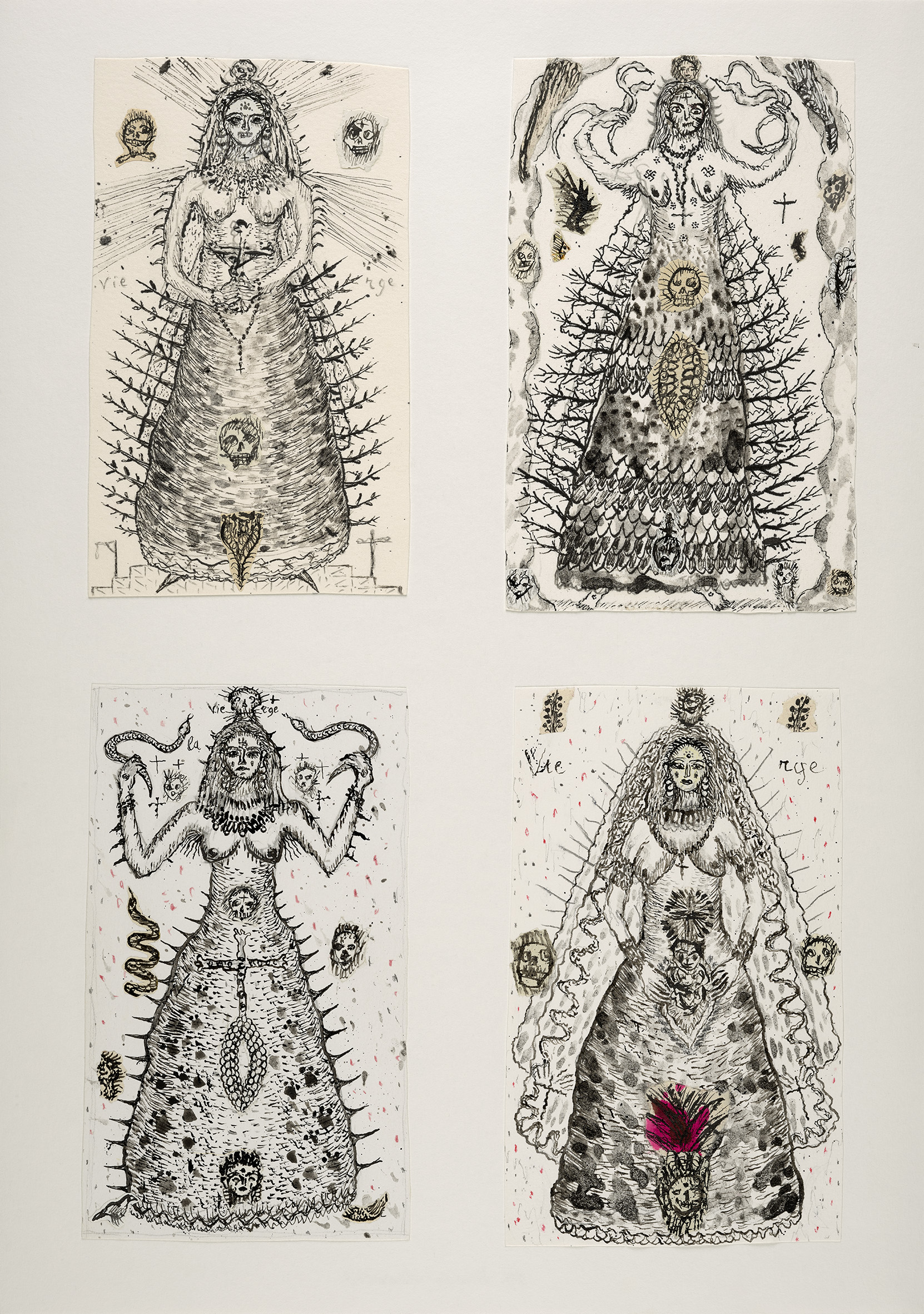 Benim ilk denk geldiğim sergilenme, art brut sanatçılarının deli iç dünyalarına güzel bir giriş olarak “İnanışlar” konulu 5. Art Brut Bienali oldu. Bahsettiğim gibi, bu sanatçılar, ben resim yapmıyorum, cinler yaptırıyor, tanrı yaptırıyor diyebilecek, hatta diyen insanlar. Dolayısıyla zaten din, maneviyat, başka dünyalar, gerçeklik ötesi bu sanatçıların sıkça hayatında yer alan “gerçekler”. İşte bu başka dünyaları bu müzede 43 sanatçının yaklaşık 300 çizim, heykel, nakış, kolaj gibi işlerinde seyredebiliyorsunuz. Sanatçıların çoğu kapalı oldukları yerler ya da imkansızlık sebebiyle standart resim, heykel malzemeleriyle çalışmamış; ellerine geçirdikleri tükenmez kalemle acayip detaylı işler yapmak, paçavralardan acayip heykeller çıkarmak bu sanatçıların alametifarikalarından. Gerçek yaratıcılık nedir, kimsenin hatta senin bile kendinden beklentin yokken neler yaratabilirsin, bunları bu müzede izleyip kavramak çok acayip. İnsan beyni kendisini alıp yıkayıp kutulara sokmaya çalışmasak hakikaten çok muazzam yaratımlarda bulunabiliyor. Sanatçıların hepsini anlatmak tek tek mümkün olmasa da meraklıları için bu serginin yıldızlarının isimlerini analım: Adolf Wölfli, Giovanni Battista Podestà, Michel Nedjar, Madge Gill, Elijah, Aloïse Corbaz ve daha niceleri…