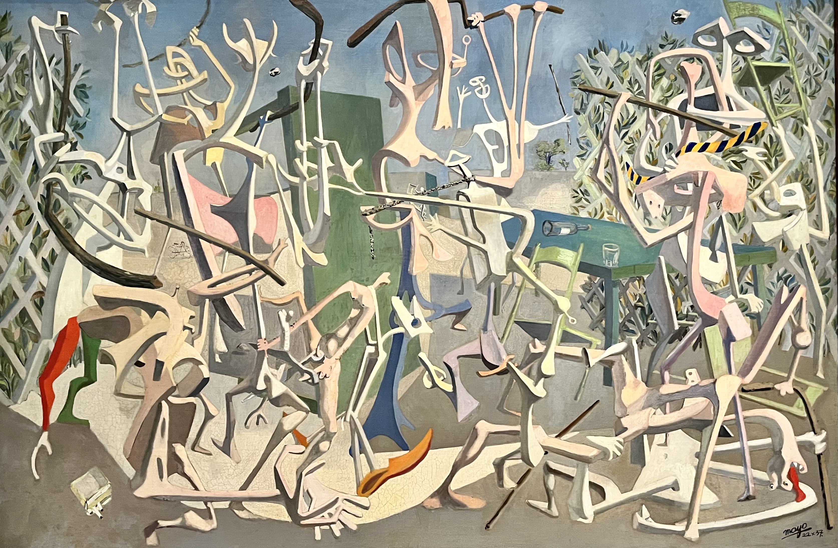 45 farklı ülkenin sanatçısına yer verilen bu sergide, birkaç eser hariç Dali, Magritte gibi sürrealizmin ana isimlerini göremiyorsunuz. Serginin güzelliği, Paris çevrelerinden, hatta olabildiğicne Avrupa’dan uzaklaşım 1920’lerden 1970’lere dünyadaki sürrealistlere bakması. Bu çerçevede ele alınan sanatçılar, sürrealizmin isyan ruhunu belirlemiş, birçoğu sık sık seyahat etmiş, fakat genel olarak bir gruba dahil olmamış sanatçılar. Evet rüyalar, hayaller resimlerinde, yazılarında, fotoğraflarında var ama sınırlar ötesinde çok daha politik bir hava seziyorsunuz. Brezilya, ABD, Meksika, Kolombiya, Prag, Portekiz, Japonya, Güney Kore, Mısır, İran’da akımın etkilerini ve bu ülkelerde yaşananlara göre şekil almasını görüyorsunuz. Sergide sürrealist çizgiler benimseyen sanatçıların bu duruş üzerinden Alman işgaline karşı, sömürgeciliğe karşı, totaliter rejimlere, politik baskılara karşı, Netflix sağ olsun protest ruhunu iyi öğrendiğimiz Şikago hareketinin muhalif duruşlarını okuyorsunuz.