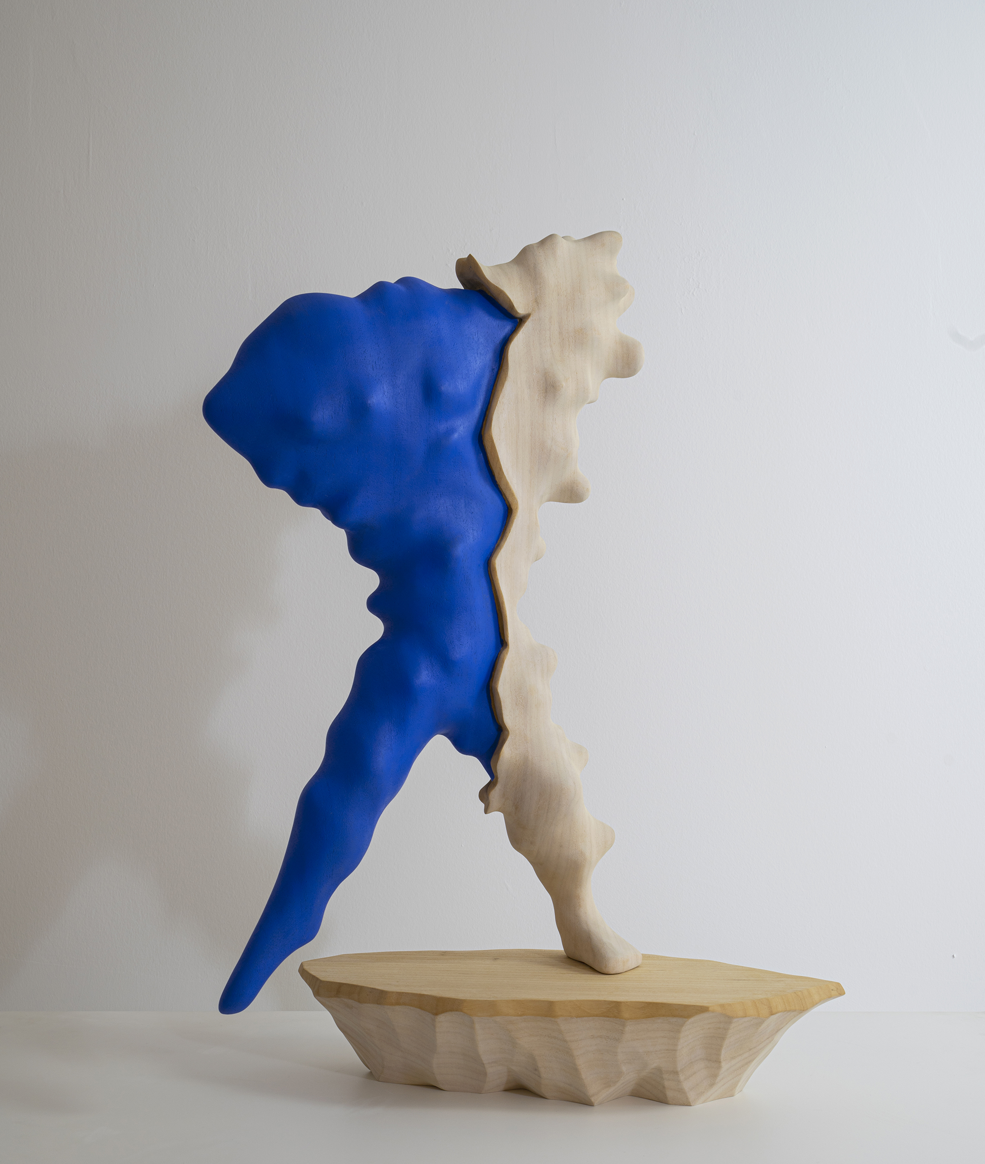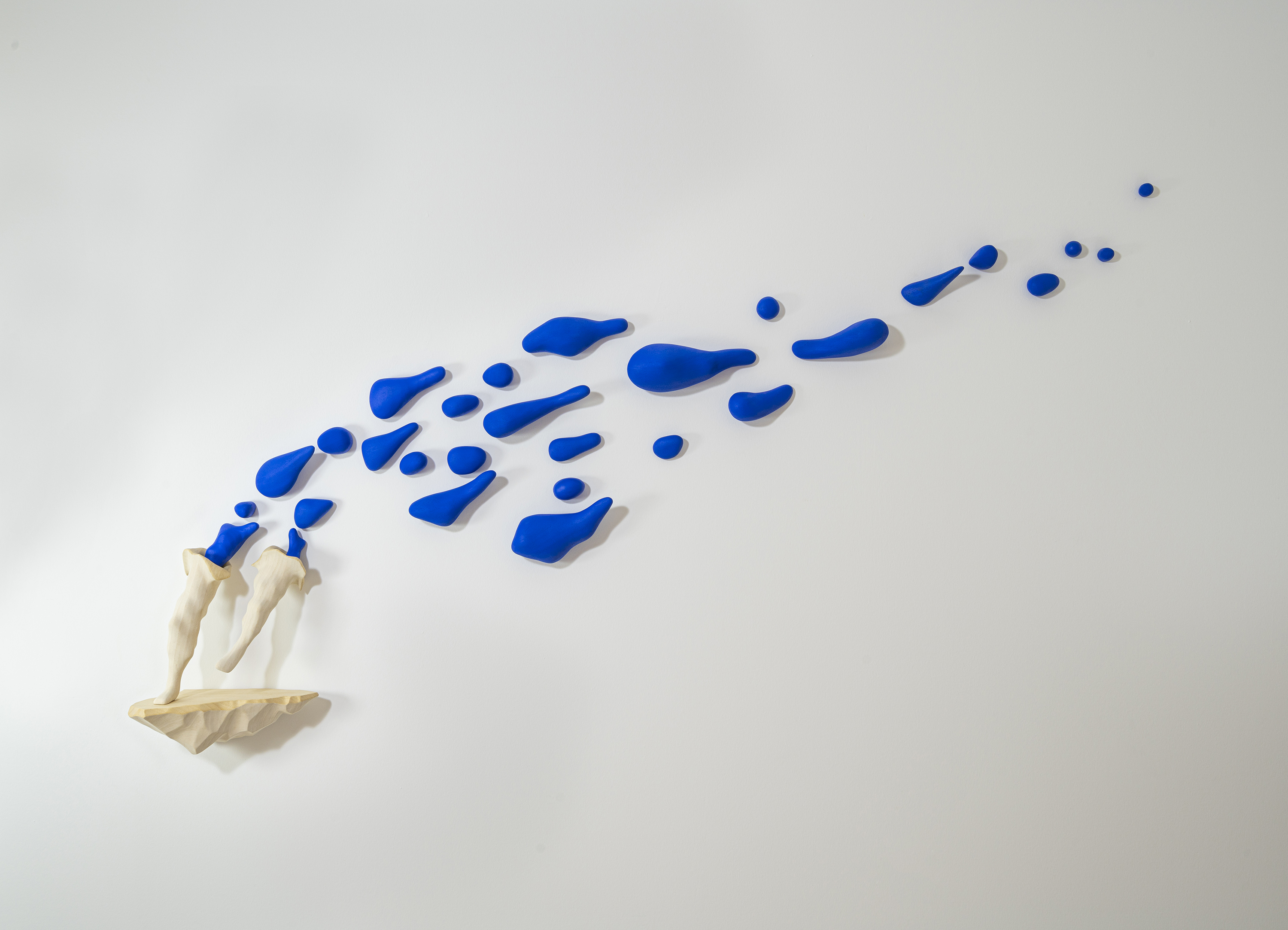 O yüzden, hareket halinde, süreçte figürlerden oluşan bir sergi bu. Tam yükselmeye devam ettiğin anda, “biraz öncesinde”, biraz öncesine kadarki süreci sana bir karakter üzerinden anlatan ve sonrasını senin yorumuna bırakan bir sergi. Önce, siyah-beyaz bir hüzün serisi ile başlıyoruz. Henüz hayallerinin bile farkında olmayanlar… Duvara bağımlı ve boşluktalar. Bazıları rüzgara karşı bir duruş halinde. Hayatınızdan gelip geçen insanların ayak izleri bu odada duruyor, onlara neden tekrar tekrar inandığınızı sorgulama zamanı bu zaman belki de… Güllerin siyah, parlak dikenleri aynı hayalkırıklıkları gibi kendilerini sakla(ya)madan sivri sivri çıkıyorlar hayatın bu döneminde. Elbet hayat hep böyle devam etmiyor; başka bir döneme, sergide başka bir odaya geçiyorsunuz. Bize mutluluk ve umudu hatırlatacak mavi figürlerle dolu bir odaya… Kanatları bir figürün, uçmaya hazırlık yapıyor ama henüz ayakları bağlı. Yükselmeye ne de hazır! Bazıları kalıplarından çıkma, bir yırtma halindeler ama yırtma heyecanından sonra yeniden inşa etmeliler o hayatı. Umut güzel ama sonsuz değil. Umut da, bu mavilik de hayat gibi eksik ve fazla. Umuda atlamak için adım atıyor bir figür, ama belliki önünde boşluk var; atladıktan sonra ne olacak? Kendini güvende hissetiğin kayadan koptuğunda bu heykel ayakta kalacak mı? Peki ya siz?