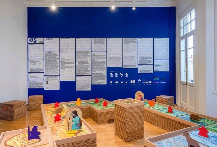 Kitapla başladık, flipbook-takas kartları ile devam ettik, fikir geliştire geliştire serginin üçüncü, son ve asıl fantastik bölümüne geldik. Burak Ata, 2022’de border_less ARTBOOK DAYS’in dördüncü edisyonuna izleyici ile kolektif bir oyun yapma tecrübesini paylaşmak düşüncesi üzerinden kurgulayıp sınırlı sayıda ürettiği ilk oyunu ”Pushkin” ile katılmış. Bu sergide iki sanatçı, kendilerine verilen mekânın sağladığı alan sayesinde bu fikri iyice geliştirip dev bir oyun tahtası (board game) yaratmışlar. Bu benzersiz oyunu kurgulamak için çok fazla oyun oynamış, farklı oyunların mekaniklerini öğrenmiş ve atölyede beraber çalıştıkları diğer sanatçı arkadaşlarıyla defalarca kurguyu denemişler. KENDİ’nin salonuna bildiğimiz oyun tahtasını dev boyutlara getirerek kendi oyunlarını kurmuş Ecem Yüksel ve Burak Ata. Bu oyunda ortada küçük bir karton tahta ve plastik piyonlar yok. Bu oyunda, odaya yayılan iki sanatçının yaptığı 28 resim ve kartondan heykeller var.