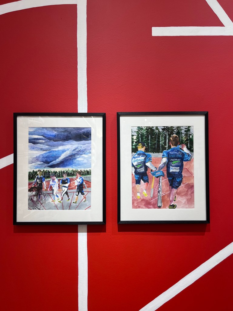 İki sanatçının 2019’da Finlandiya’da Sanatçı Residansı’nda yaptıkları resimler “Päivä” isimli kitapta toplanmış ve 2020’de border_less ARTBOOK DAYS’de sergilenmiş. İki kişinin birlikteliğinden doğan bu kitap kurgusunda, serginin tümünü kaplayan iki kişi olma hali, beraber olma hali görülüyor. (Kitap, sergi alanında da yer alıyor.) İki kişi evden çıkıp yürüyüş yapıyorlar, kaldıkları yerin kolektif bir aktivitesi oyun izleniyor. Hem oyunun, hem izlemenin birlikteliği söz konusu kitapta ve bugün serginin ilk bölümünde duvarlarda yer alan resimlerde. Zeynep Kendi’de bu sanatçı ikilinin bir nevi oyuncak müzesi olan KENDİ’de sergi yapması fikri, kitabın tanıtıldığı bu etkinlikte böylece oluşmuş. Sonra mekânın odalarının da kullanılabileceği söylenince, daha büyük bir proje fikri yaratmak üzere küratör Tuna Pektaş ekibe katılmış. Pektaş, suluboyalarla ikilinin oyun kurgularını birleştirmiş.