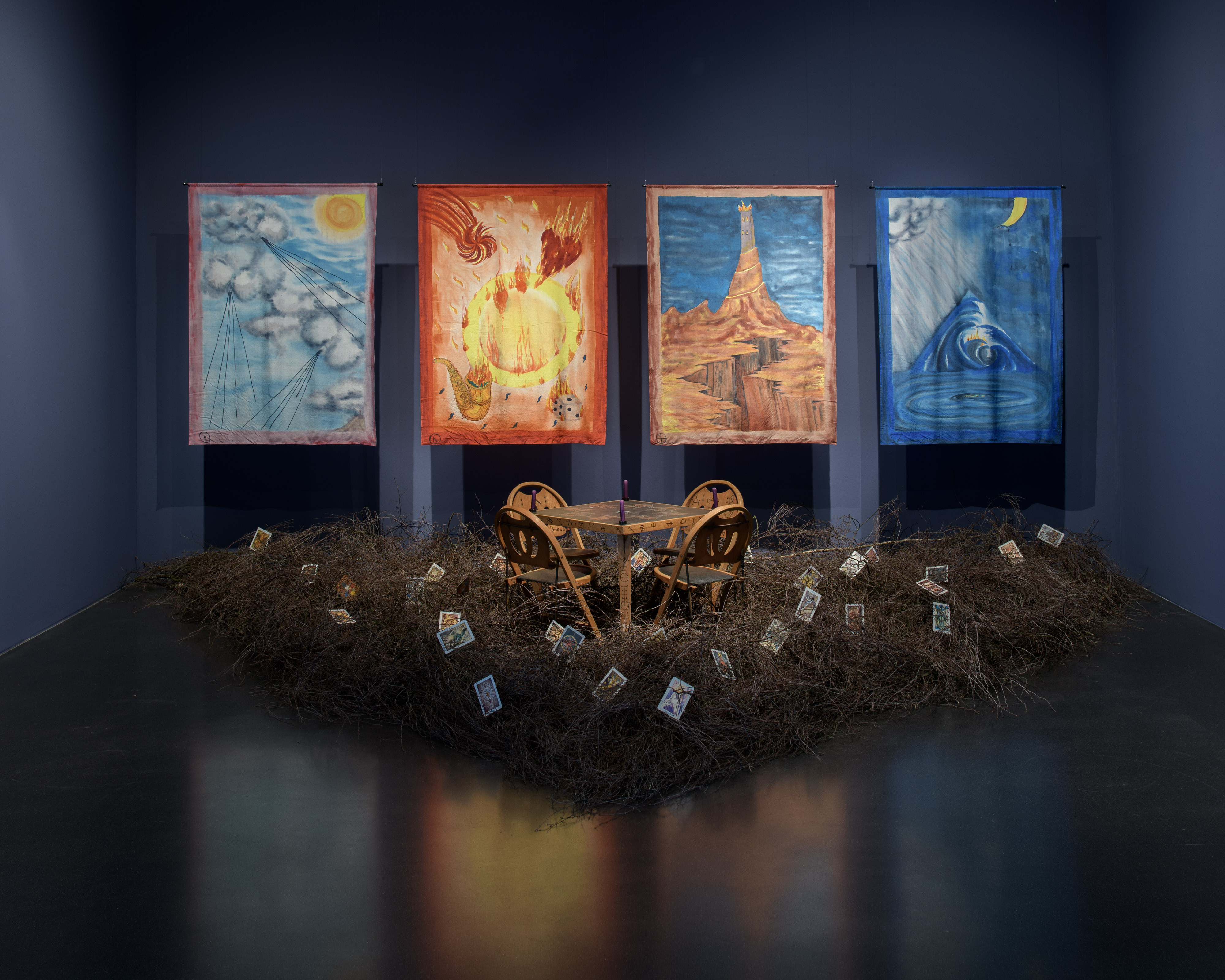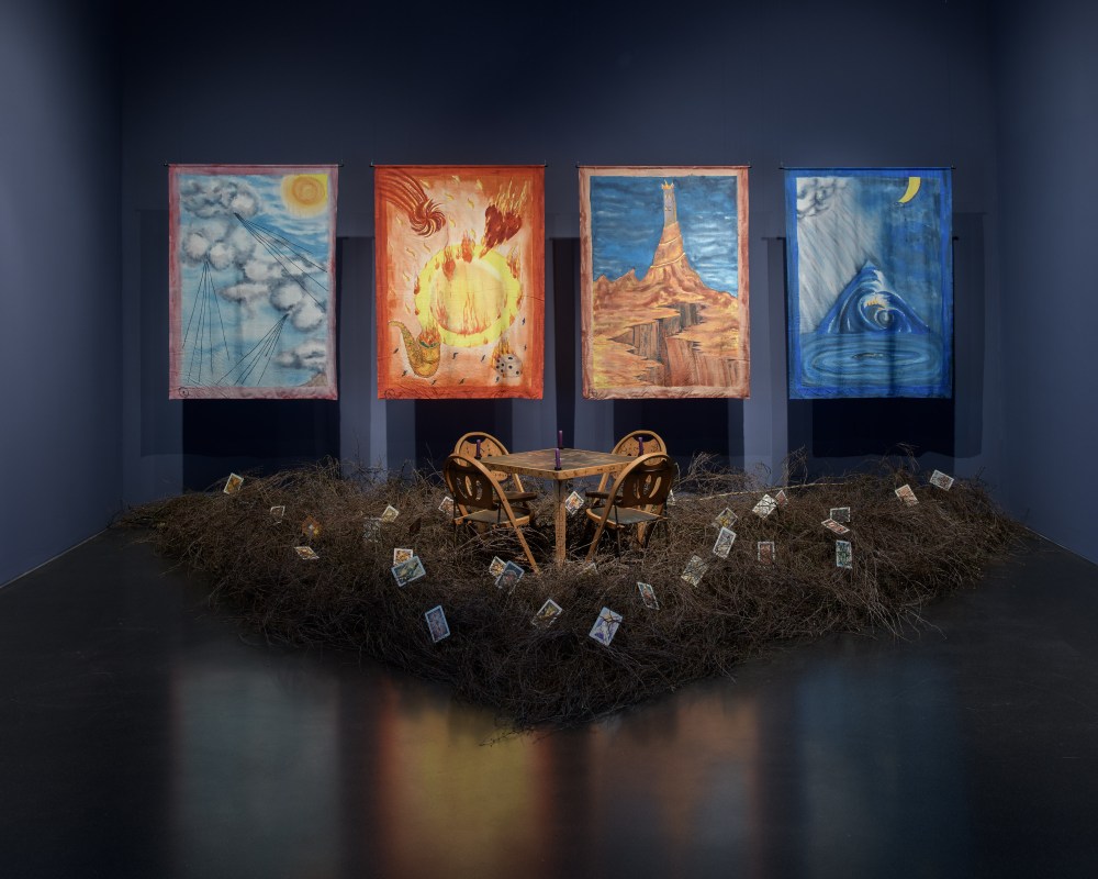Betye Saar ile soğuk bir müzenin ortasındaki bir bit pazarında tanıştım diyebilirim. Sanatçının Kunstmuseum Luzern’de İsviçre’de izleyicinin karşısına ilk kez çıktığı Serious Moonlight sergisine girdiğinizde sanatçının bit pazarında yürüyerek bize seslendiği kendini anlattığı bir video görüyorsunuz salonun ortasında. Videoda Saar kendini, ailesini, sanatını anlatırken videonun yanlarında ve karşısındaki çizimlere göz atıyorsunuz: Tarot kartları, el falları, büyüler, yılanlar, balıklar. (Hatta serginin sonunda ziyaretçilerin sevdiklerini hatırlatan eşyalarını bıraktıkları, Saar’ın muhtemelen eserlerinde kullanacağı, kutsal görünümlü bir köşe bile var.) Serginin odalarında ilerledikçe kolajlar, asamblajlar, enstalasyonlar arasında, bu mistizm ile beraber size doğru gelen politik mesajları da görüyorsunuz: siyahi kimlik, Amerika Birleşik Devletleri’ndeki ırkçılık tarihi, batı toplumunda yaygın olan ayrımcılık yer alıyor Saar’ın hikayelerinde. Bu hikayeler hem otobiyografik hem de ABD’deki siyahi olma durumunun kolektif deneyimlerini yansıtarak bu toplumu, yaşadıklarını anlatıyor. Bu anlamda bir aktivist gibi davranan Saar, farkında olmayanlara farkındalık kazandırıyor, bizim gibi uzak coğrafyalarda yaşayıp bu ayrımcılığa tanık olmayanlara ise olanları anlatıyor, öğretiyor.