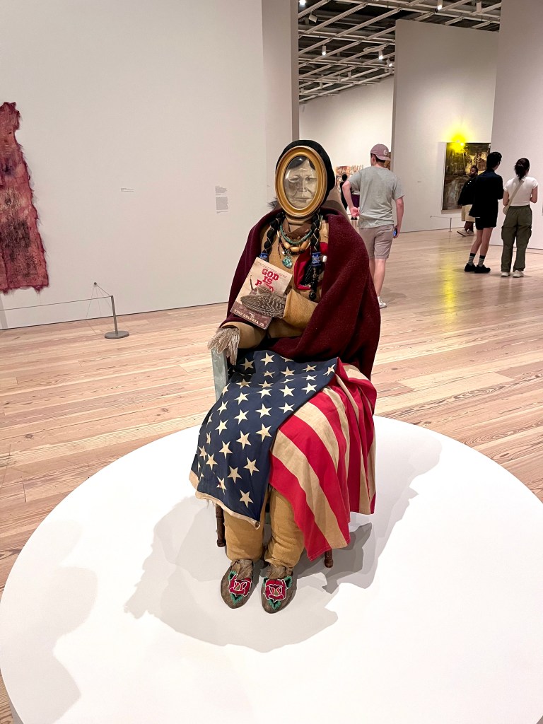 Memory Map – Hafıza Haritası sergisi, 1940 doğumlu Konfedere Salish ve Kootenai Kabilelerinin bir üyesi olan sanatçı, eğitimci ve aktivist Jaune Quick-to-See Smith’in New York’taki ilk retrospektifi; sanatçının çığır açan bir sanatçının çalışmalarına gecikmiş bir bakış. Yazının başında da söylediğim gibi, külliyatı geniş olan sanatçı üzerine yazılmış bir tanecik kitap var. Amerika kıtasının “azınlıklarına”, gerçek sahiplerine, ana akım olmayan sanatçılara yer vermesiyle ünlü Whitney Museum, sanatçının yaklaşık elli yıllık çizimlerini, baskılarını, resimlerini ve heykellerini, kariyerinin bugüne kadarki en büyük ve en kapsamlı sergisinde bir araya getirmiş.