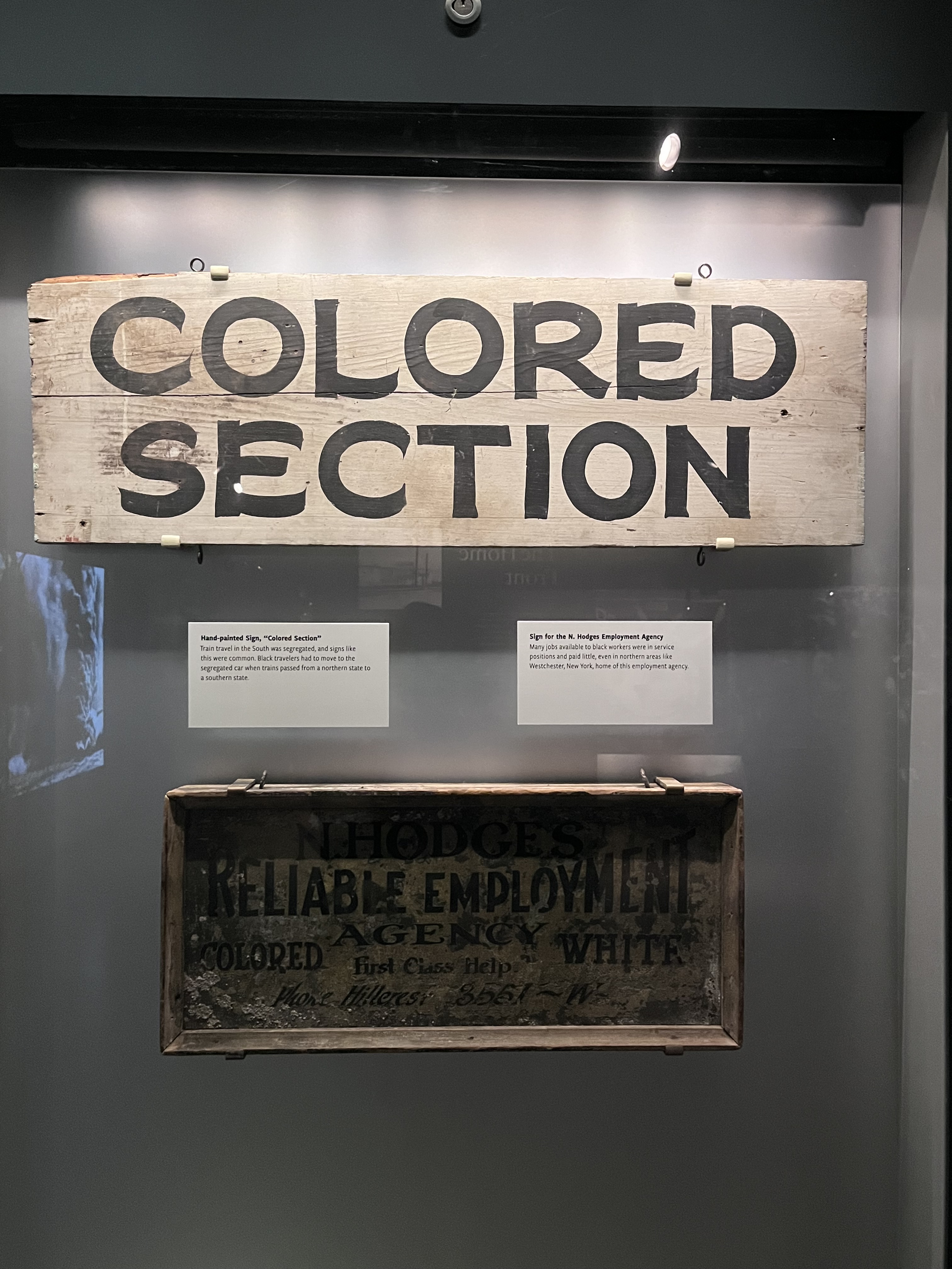 Müzede bugün 40 binden fazla eser bulunuyor. Bu eserlerin belirli bir kısmı oldukça geniş açıklamaların yanında fotoğraflar, multimedya çalışmalar, videolarla beraber sergileniyor. Açıklamaların aşırı uzunluğunu saymazsak (ki bence gerekliydi ama belli bir süreden sonra başınız dönüyor), çok güzel bir müze gezme deneyimi yaratılmış. Döne döne katlarını çıktığınız müzede sizi alt kattan gezmeye başlatıyorlar. İlk iki kat oldukça sert bir şekilde yüzünüze çarpıyor. 600 yıllık kölelik, ayrımcılık, mücadele ve özgürlüğü yürüme tarihi. Özellikle konuya aşina olmayanlar için çok öğretici hem de dehşet verici açıkçası. Bu kadar yakın bir tarihte yaşanılanlar, bizim gibi farklı kıtada yaşayan ve bu işe hiç bulaşmamış insanlar için sanki filmmiş, gerçek değilmiş gibi. Müzenin Afrikalı Amerikalı tarihini sıfır noktasından, insanların Hollanda, Portekiz, İngiliz gemileriyle kaçırılıp köleleştirilmesinden itibaren anlatan ilk bölümünde, insanların yaşadıkları yerlerden kaçırılarak konserve gibi sıkıştırıldıkları köle gemilerinde bağlandıkları demilerden (ki kölelerin getirildikleri şeker ya da pamuk plantasyonlarında ortalama yaşam süresi 7 yılmış!), köle pazarında insanların üzerine çıkarılıp alıcılara sunulduğu taşa, kolonyal döneme, Amerikan İç Savaşı’na ve orada siyahlar-beyazlar arasından yapılan anlaşmalara, siyahlar ve beyazlar için ayrı ayrı oturma yerleri olan otobüslerin bizzat kendisine kadar müzede insana ibret veren birçok şey, adım adım sizi yakın tarihte gezdiriyor. ABD’de “Jinekolojinin Babası” olan Dr.J.Marion Sims’in bu “prestijli” üne üzerinde deneyler yaptığı köle kadınlar sayesinde ulaştığını öğreniyorsunuz mesela. Ya da İngiltere’nin köle ticaretini yasakladığında 2.4 milyar dolar tazminat ödediğini; kölelere değil, köle çalışanlarını kaybeden köle sahiplerine! Gettolaştırılmış kasabaları, özgürlük mücadelesinin isimlerini, anlaşması yapılıp tutulmayan sözleri, Ku Klux Klan dehşetini tek tek tabelaları, kıyafetleri, fotoğrafları ile görüyorsunuz. Bu, bazı görüşlere göre bir direnişin de kutlanışı. Bu kadar zulüme rağmen dayanan ve bu ülkede kendine bir yer edinen bir ırkın kutlaması.