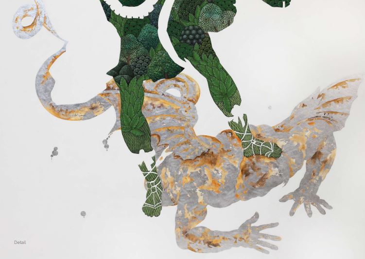 Ve böylece ortaya çıkıyor Waseem Ahmed’in minyatürler içinde hep bir şiddet peşindeki simsiyah, kanatlı Yunan heykeli formundaki figürleri. Hep siyah, çünkü hep korku; hep biri, başka birine güç uyguluyor “zafer” peşinde. Kılıçlar, iblisler, kutsal hayvanlar, sakallı adamlar, kan sıçramış yüzeyler, burkalar, botanik arka planda kamufle edilmiş melez figürleri sallayan kanatlı veya haleli galiplerin ikonografik görüntüleri… Hep bir çatışma halinde. Zafer için… Doğu-batı fark etmeden ortaya serilen tatsız dünyanın, estetik, kendine has doğu-batı karışımı yorumu… Bir acayip vahşi insan doğasının sanat tarihinin konularından, tekniklerinden yararlanan etkileyici, estetik özeti.