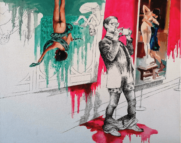 Kum’un konu ettiği sanatçılardan hepimizin bilmese de o havası buğulu oryantalist tablolarından işlerini iyi tanıdığı Jean-Léon Gérôme, Edward Said’in tanımladığı oryantalizmin imgeye dökülmüş hali mesela… Gérôme, doğunun batı kafasındaki imgesini oluşturan adam, diye anlatıyor Burhan Kum; türbanlar, beyaz tenli kadınlar… ‘’Bu güzel kadınlara sahip çöl bedevilerinin birşey bildiği yok, bizim bilgimize, yönetimimize ihtiyaçları var,’’ diye imgeler üzerinden kendini politik olarak doğruluyor sömürgeci batı.Burhan Kum bu anlatıların üzerindeki örtüyü kaldırıyor sergisinde imgeler ile. Yıllardır övgülerle söz ettiğimiz ustalar, müzeler, aslında çıplak krallardır diyor.