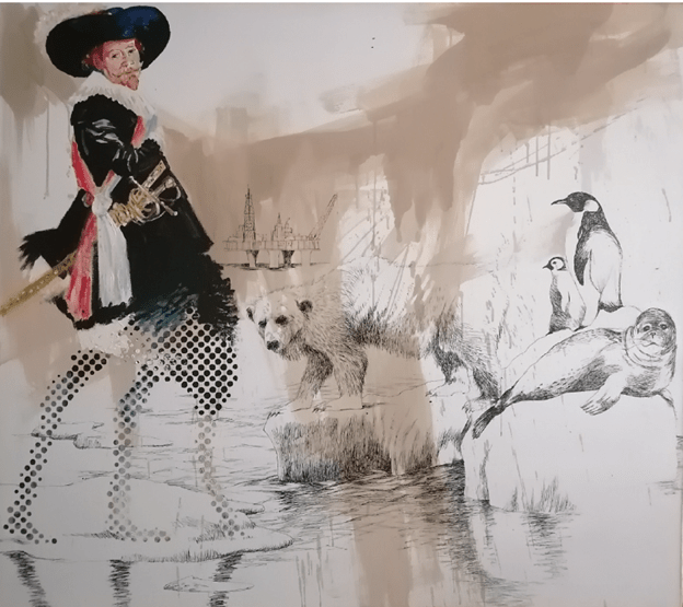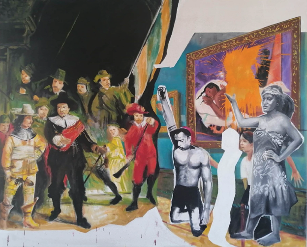 Burhan Kum iki yıl boyunca üzerine düşünüp bir yılda ortaya çıkardığı sergiyi düşünme sürecinde sanatın nasıl bir propaganda aracı olarak nasıl ve kimler tarafından kullanıldığına kafa yormuş. Bugünlerde gazeteyi açtığın her gün Ukrayna’da savaş, Gazze’de savaş, Trump’ın Kanada da Grönland de benim naraları, Çin’in komşu topraklarını işgali… Zorbalık, kötülük, kan revan gırla gidiyor. Aslında geçmişten bu yana değişen birşey yok. Sadece 300 yıl önceki sömürgeciliği, Afrika’nın sömürgeciler arasında parça parça bölünüşünü anlamak bugünü anlamayı daha kolaylaştırıyor diyor sanatçı. Peki sanatçılar bu ve sonraki dönemlerde ne yapmış? Neyi savunmuşlar? Nasıl insanlarmış? Aslına bakarsan bugün çok ünlü, çok başarılı addettiğimiz bir çok sanatçı zorbalığın, sistemin bir parçasıydı; devletlerin propaganda araçlarıydı diyor Burhan Kum. Rönesans döneminde sanat ve sanatçılar, dini pazarlamak için birer propaganda aracı. Barok dönemde sömürgecilik, cinayetler, yine sanat aracılığı ile perdeleniyor. Yüksek batı sanatının övünç kaynaklarından Rembrandt, Hollanda dünyanın başka köşelerinde başka halkaların kaynaklarına kan gövdeyi götürterekten çökerken, ‘’aa onu boşver kuşa bak!’’ der gibi, insanlara olan biteni değil, ışığı estetiği konuşturuyor. Bugün Trump’ın, Musk’ın tablosunu yapsalar, adamların politik kimliklerini bir yana bırakıp ay bu tablonun estetiği, ışığı pek hoş diyebilir miyiz? Tarih boyunca demişiz işte…