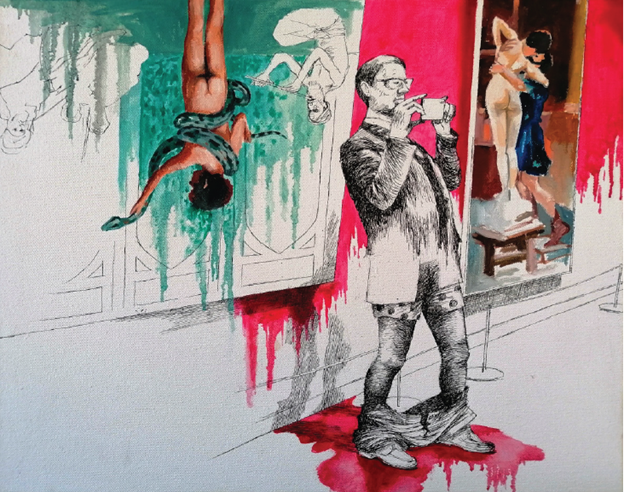 Burhan Kum iki yıl boyunca üzerine düşünüp bir yılda ortaya çıkardığı sergiyi düşünme sürecinde sanatın nasıl bir propaganda aracı olarak nasıl ve kimler tarafından kullanıldığına kafa yormuş. Bugünlerde gazeteyi açtığın her gün Ukrayna’da savaş, Gazze’de savaş, Trump’ın Kanada da Grönland de benim naraları, Çin’in komşu topraklarını işgali… Zorbalık, kötülük, kan revan gırla gidiyor. Aslında geçmişten bu yana değişen birşey yok. Sadece 300 yıl önceki sömürgeciliği, Afrika’nın sömürgeciler arasında parça parça bölünüşünü anlamak bugünü anlamayı daha kolaylaştırıyor diyor sanatçı. Peki sanatçılar bu ve sonraki dönemlerde ne yapmış? Neyi savunmuşlar? Nasıl insanlarmış? Aslına bakarsan bugün çok ünlü, çok başarılı addettiğimiz bir çok sanatçı zorbalığın, sistemin bir parçasıydı; devletlerin propaganda araçlarıydı diyor Burhan Kum. Rönesans döneminde sanat ve sanatçılar, dini pazarlamak için birer propaganda aracı. Barok dönemde sömürgecilik, cinayetler, yine sanat aracılığı ile perdeleniyor. Yüksek batı sanatının övünç kaynaklarından Rembrandt, Hollanda dünyanın başka köşelerinde başka halkaların kaynaklarına kan gövdeyi götürterekten çökerken, ‘’aa onu boşver kuşa bak!’’ der gibi, insanlara olan biteni değil, ışığı estetiği konuşturuyor. Bugün Trump’ın, Musk’ın tablosunu yapsalar, adamların politik kimliklerini bir yana bırakıp ay bu tablonun estetiği, ışığı pek hoş diyebilir miyiz? Tarih boyunca demişiz işte…