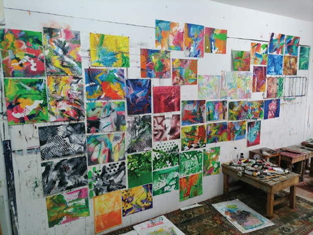 Burhan Kum, bu sergisinde daha önceki sergilerinde görmediğimiz soyut resim çalışmalarına da geniş yer vermiş bana göre bir değişiklik, kendisine göre bir öze dönüş olarak. Resmin temel gerçekliğinden kopmamak için soyuta dönmek, bu pratiği yapmak gerekiyor, diyor sanatçı. Resimde düşünmen gereken tüm detaylar ince/kalın, açık/koyu, uzak/yakın, sığ/derin, yatay/dikey, serbest/geometrik, yüksek/alçak, durağan/hareketli, flu/net, parlak/mat, boşluk/doluluk soyutta yer alıyor. Bu detaylar aynı zamanda sürekli pratik etmen gereken temel detaylar. Burhan Kum, futbolcu Messi’den örnek veriyor anlamam için. Messi, gençlik yıllarında herkesten iyi olmasına rağmen takım antremanları bitip herkes dağıldıktan sonra sahada kalır ve 500 tane şut atarmış kaleye. İhtiyacın yok, neden atıyorsun diye sorulduğunda, bütn bu basit şutları devamlı attığım için ihtiyacım olmuyor, demiş. İşte soyut da böyle Kum için; daha iyisini yapabilmen için yapman gereken temel el alışkanlığı. İhtiyacın olduğunda, çözüm bulamadığında soyut düşünebildiğinde meseleyi daha kolay çözebiliyorsun. Dönebildiğin, yolunu tekrar bulabildiğin bir liman gibi soyut.