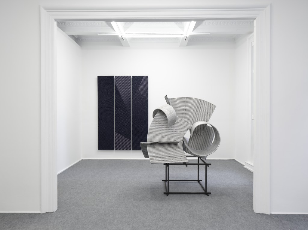 Ertuğ’dan sonra sonra Ömer Pekin odasına dalıyoruz. Ömer Pekin, 2,5D cephe heykelleri tasarlıyor. Son dönemde “Soyut kavram olarak bildiğimiz renk bir materyal olabilir mi?” sorusuna kafa yoran sanatçı, verilerle çalışarak senelerce ürettiği farklı varyantların bir sonucu olarak bu sergideki üretimlere varıyor. 3 farklı eser görüyorsunuz; bir heykel, bir video, boyutların ve renklerin sınırlarını sorgulayan bir tablo.
