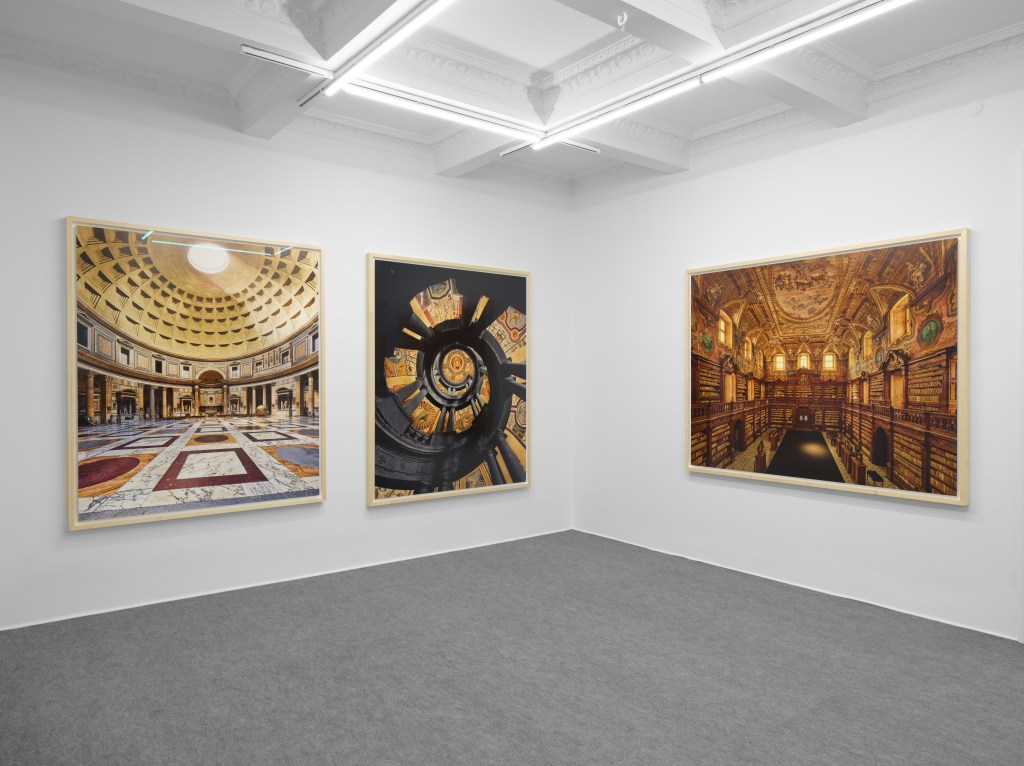 Sergiye ilk girişi Ahmet Ertuğ’un müzelere daha da yakışacak dev eserleri ile yapıyoruz. Ahmet Ertuğ, kütüphanelerle ilgili araştırmalar, veriler toplayarak bu fotoğrafları uzun araştırmalar sonucu çekiyor. Sergide gördüğümüz o dev, büyüleyici, size içine çeken fotoğraflar dijital değil analog. Sanatçı, fotoğraflarını inanılmaz uğraşılar sonucu çekiyor; çektiği fotoğraflarda mekanların her detayını alıyor. Örneğin; bir fotoğraf için 5 saatte aynı yerde durup açılara bakıp, doğru ışığı bekleyip sonra bir kere deklanşöre basıyor; ya da bir iç mekan fotoğrafını çekebilmek için 3 yıl üst üste Floransa’ya gitmiş. Mekanın o döneminin arşivi olan fotoğrafları sayesinde, mekanda geziyormuş gibi bir hissiyata kapılıyorsunuz.Ertuğ’un fotoğrafları ilk kez Türkiye’de bir galeride yer alıyor.
