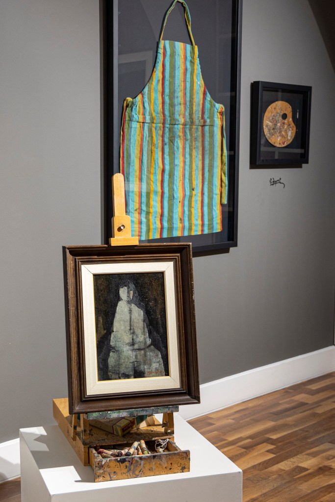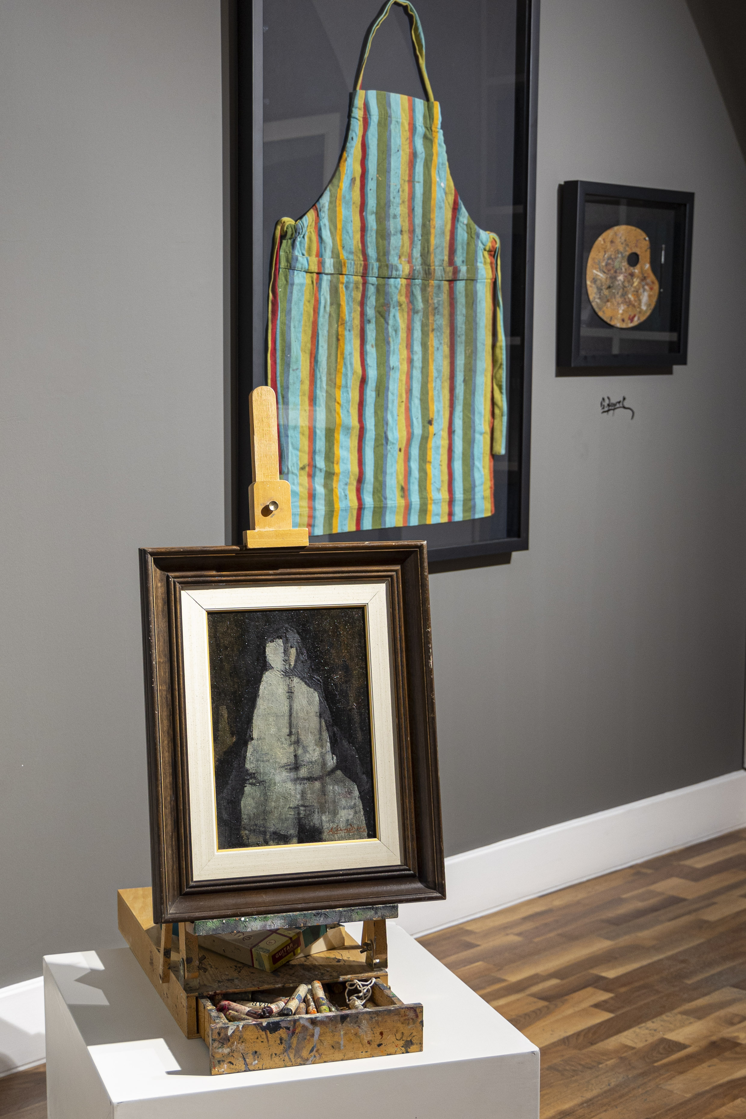 Tenduvar sergisi, Güven Zeyrek’in eserlerinin yanı sıra, Dikili’deki atölyesini fırçaları, paletleri ve kitapları ile birlikte yeniden yaratmış. Ayrıca, bu atölye alanında sanatçının ses kaydını da dinleyebiliyorsunuz; ziyaretçiler böylece Zeyrek’in üretim sürecine adım adım tanıklık etme imkânı buluyor.